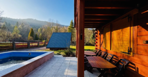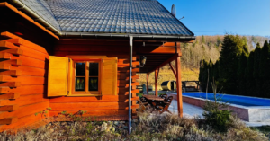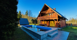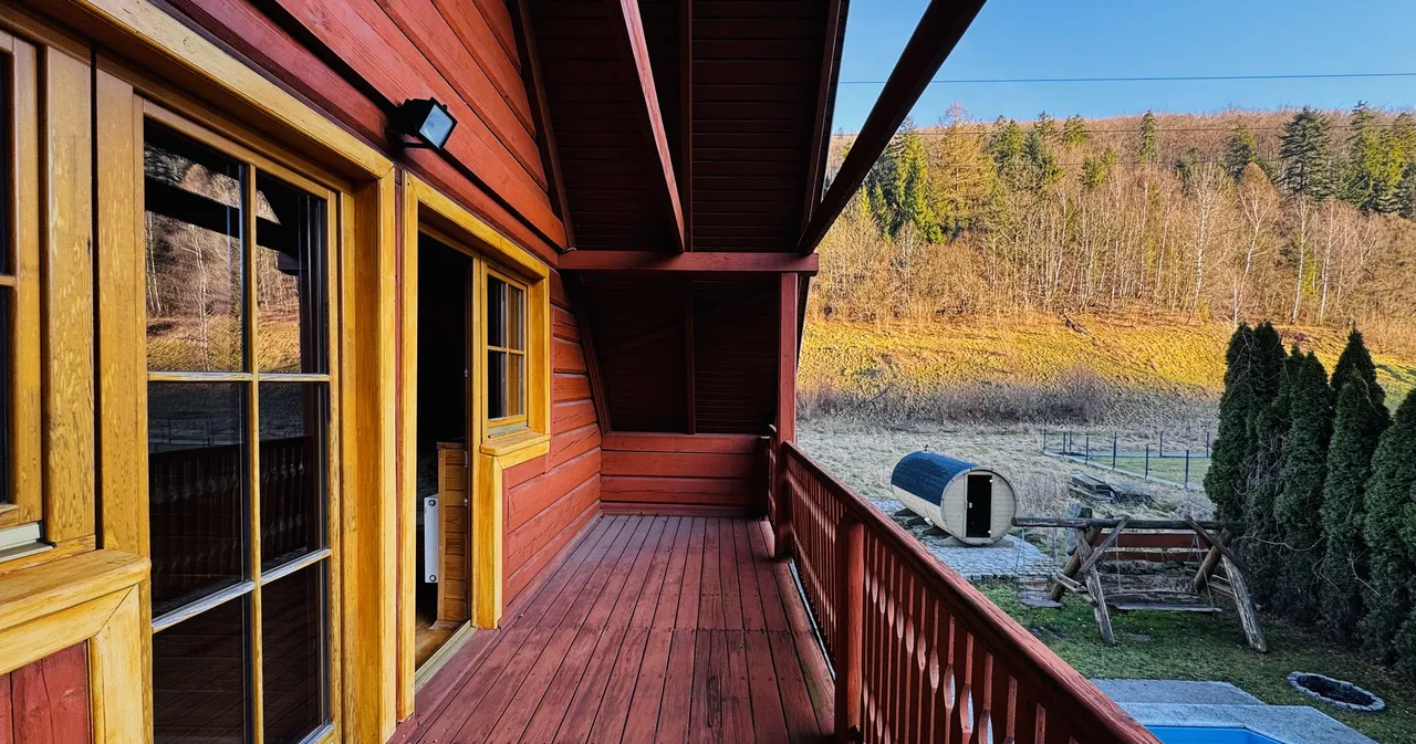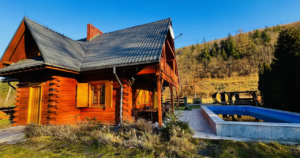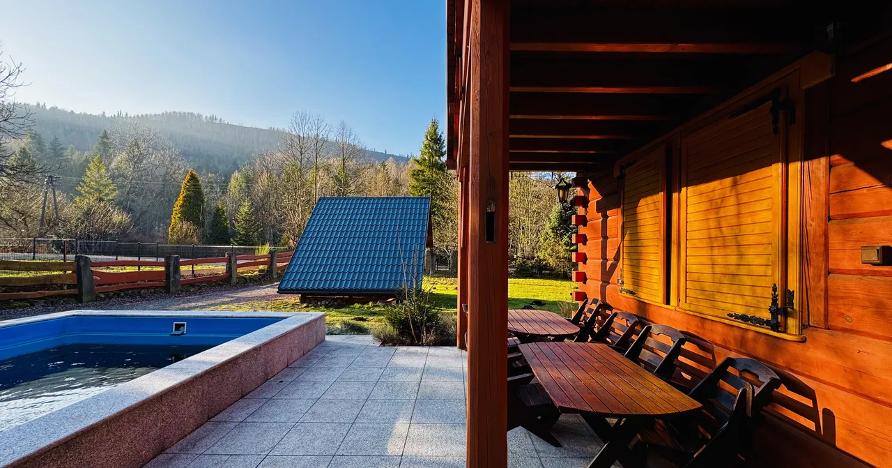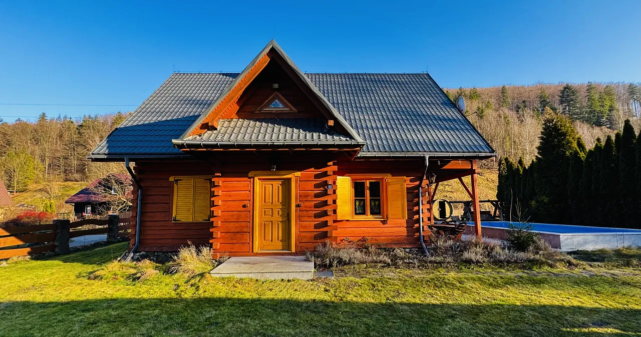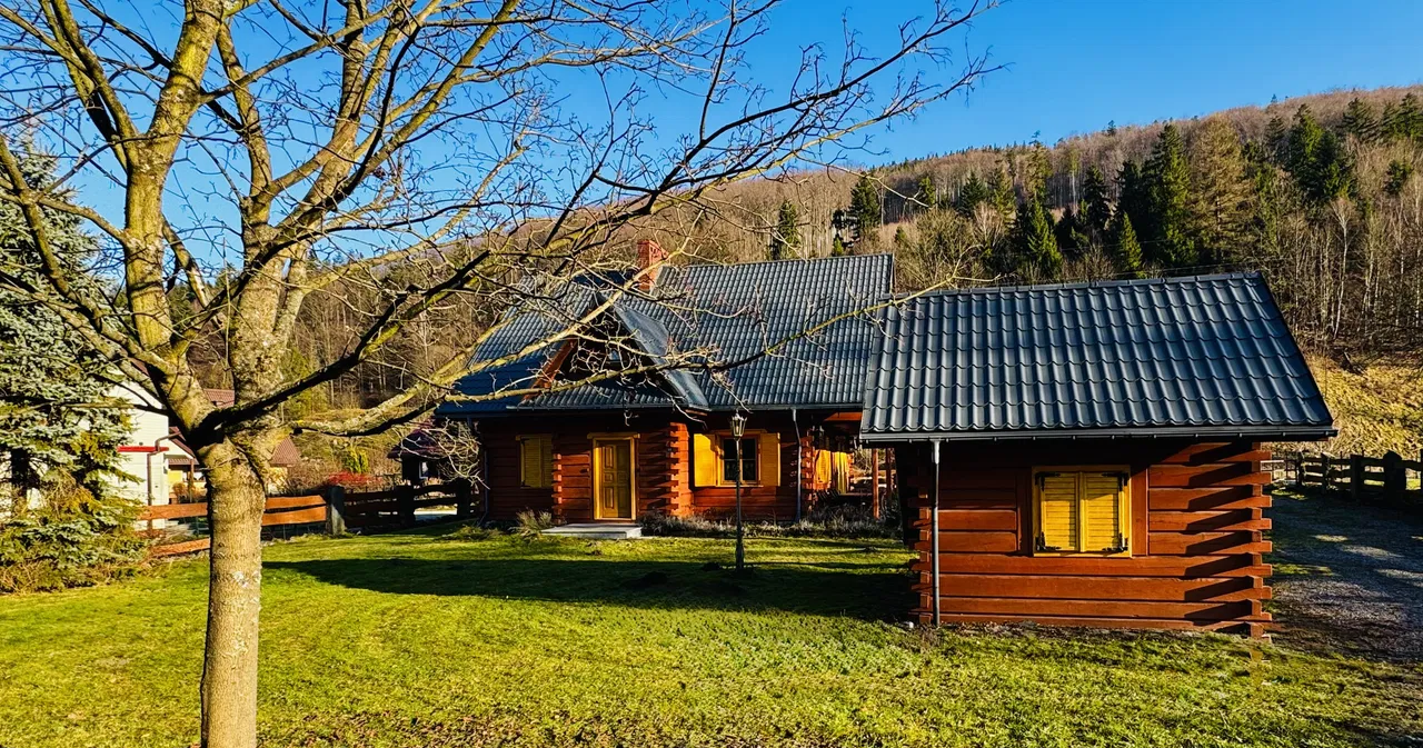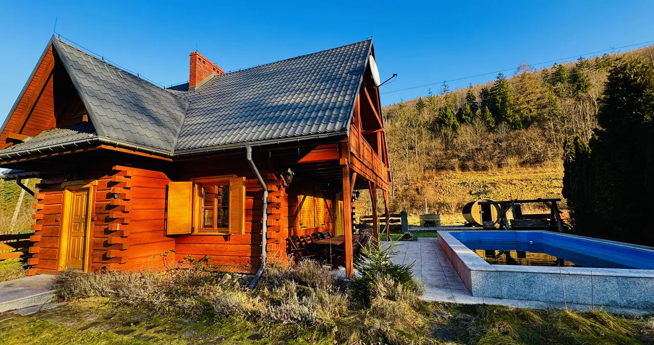 Na sprzedaż piękna i klimatyczna nieruchomość - dom z bala z dużym basenem i domkiem gospodarczym przydatnym na szpargały , pod Starym Groniem , w sąsiedztwie potoku Leśnicy